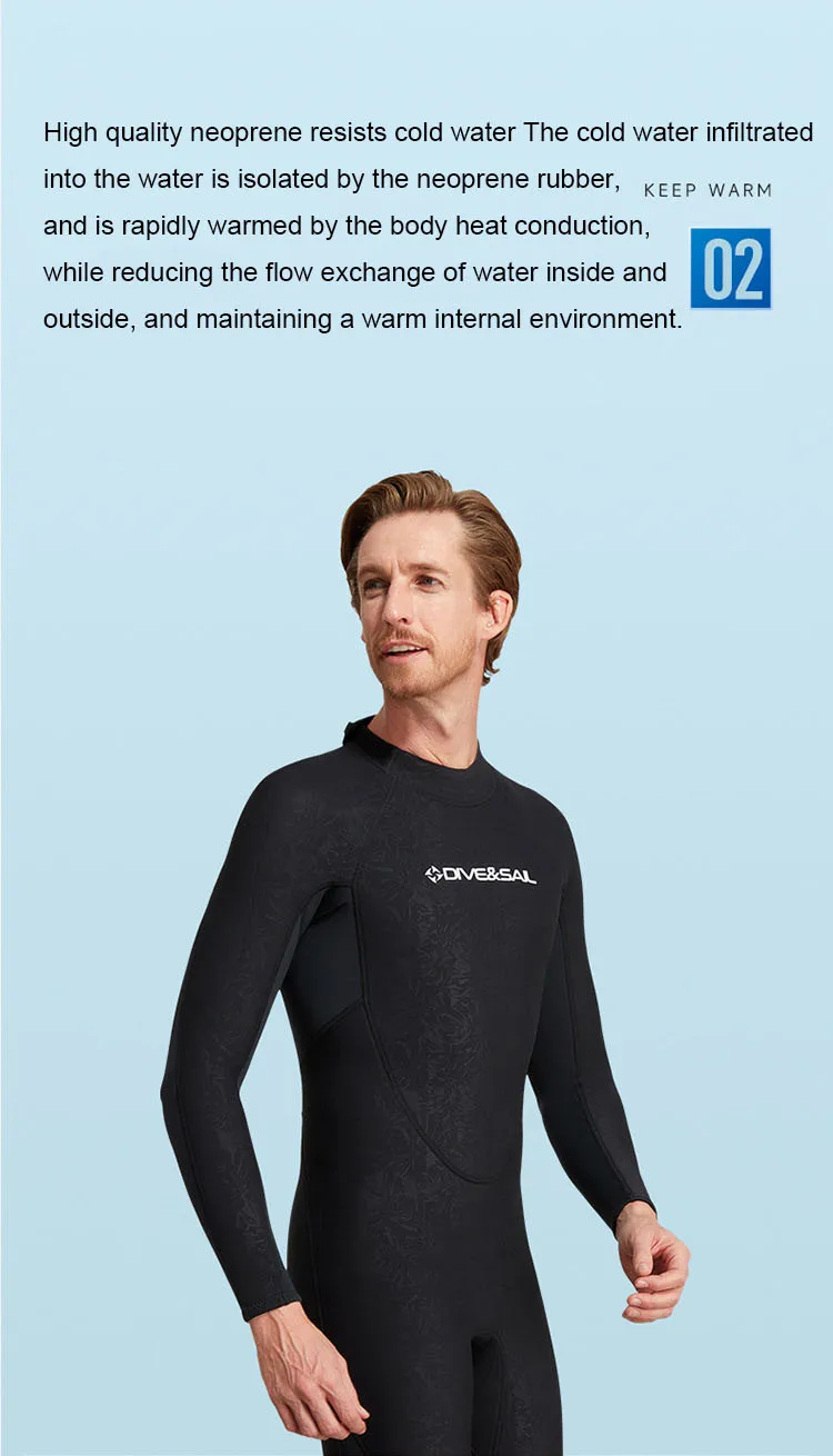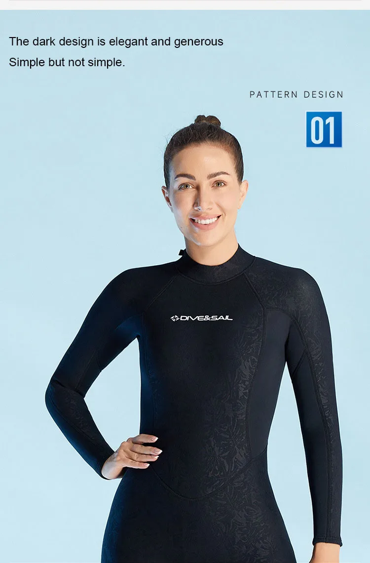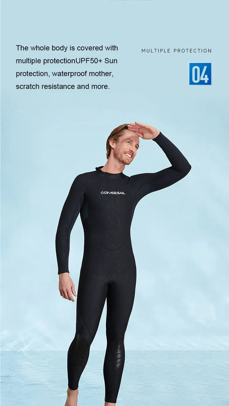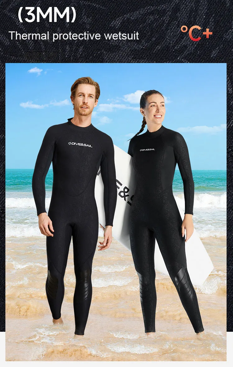 3mm Neoprene Wetsuit One-piece Women Men Long-sleeved Diving Suit Warm Swimsuit