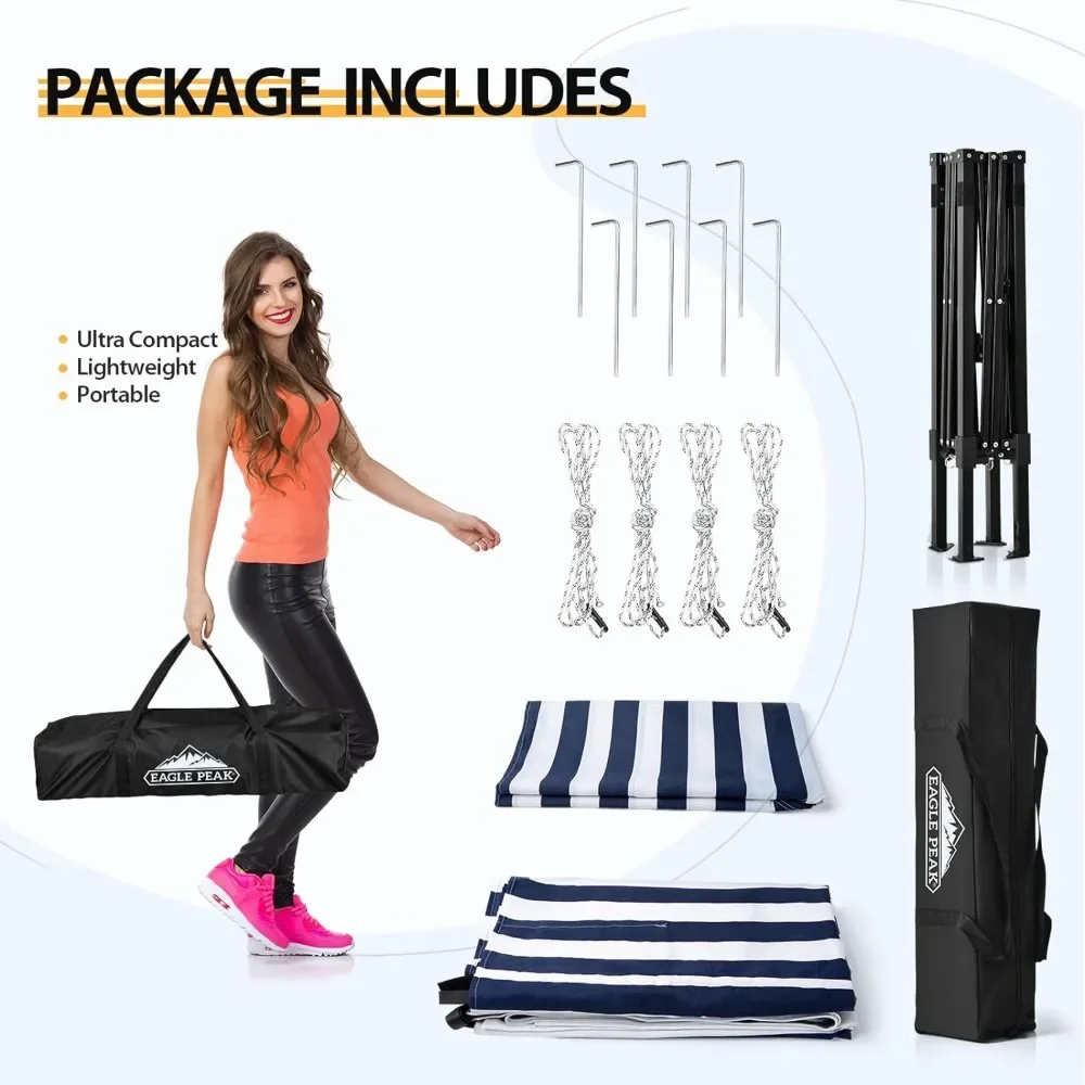 - EASY to SET UP and put-away: The EAGLE PEAK fiberglass FLEX ceiling system is more flexible than steel ceiling roof cabana changing roomsand makes setup easy. The frame glides when opening and closing, enabling one person to easily open and close the canopy.