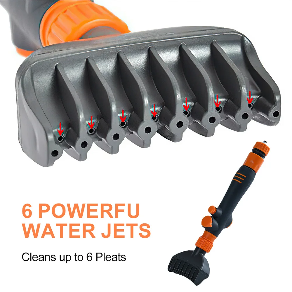 PREMIUM DESIGN:6 Premium prepositive Jets design creates a high pressure,Water saving way that can come into each of filter pleat,Removes Debris and Dirty from filter in seconds.
