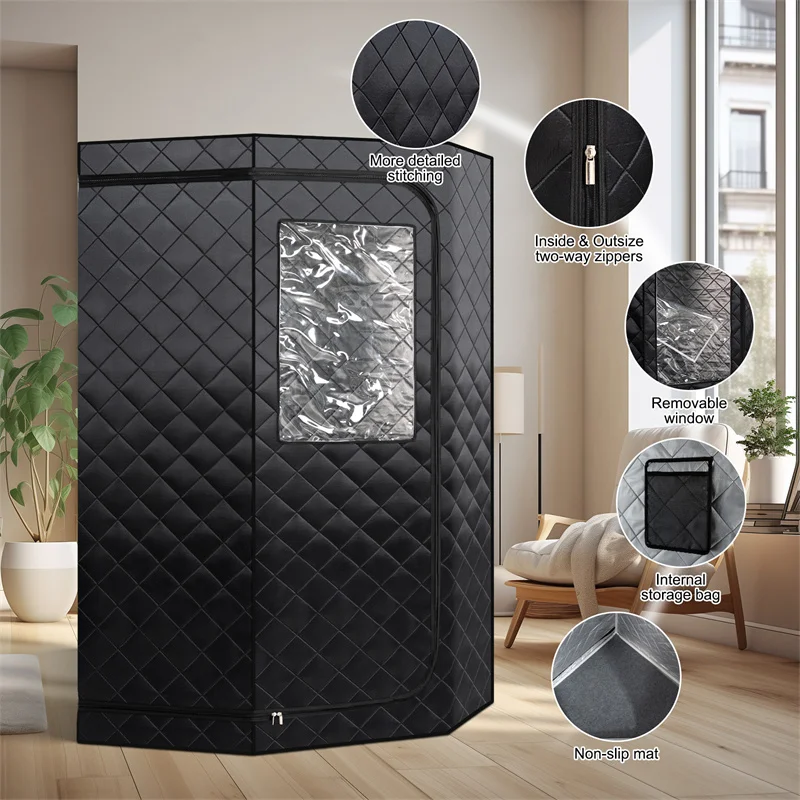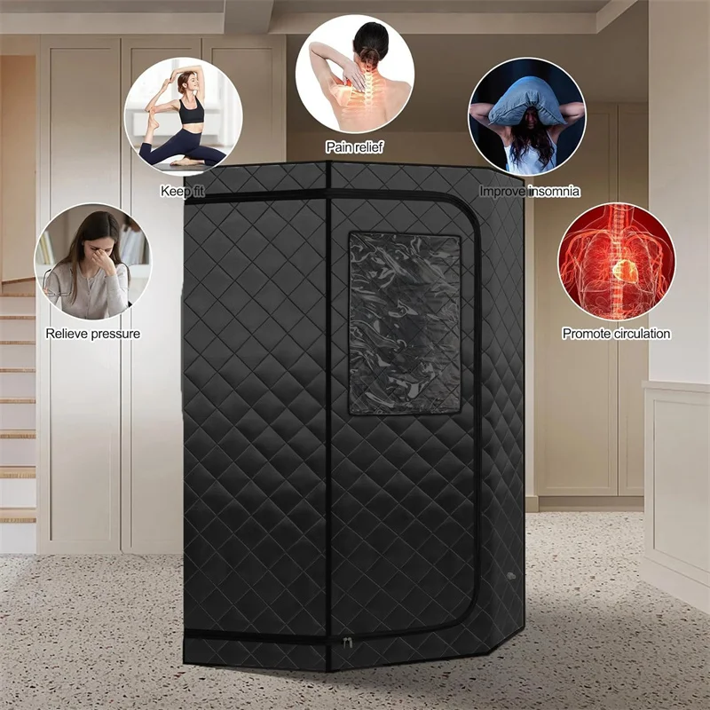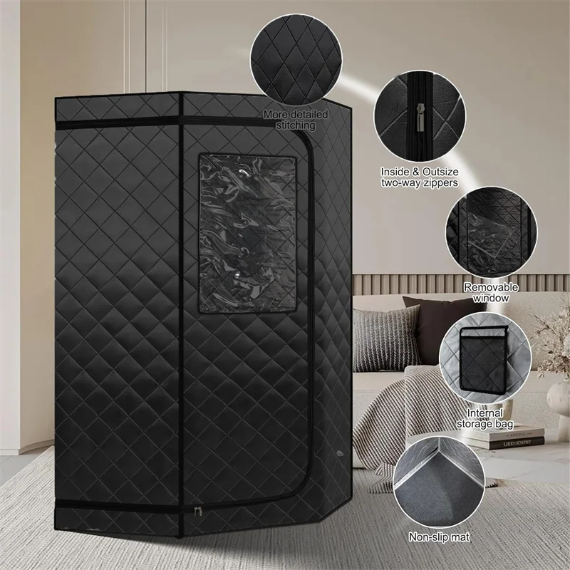 【Qualty Fabric, Product Details】: The full body steam sauna has five layers of composite cotton high-density fabric production, double insulation to prevent heat loss, and easy to clean. Transparent windows give you an open view, does not affect you in the use of sauna is to watch programs or other, uncomfortable when you can also directly open the breathable, double-sided zipper design is more convenient to enter and exit