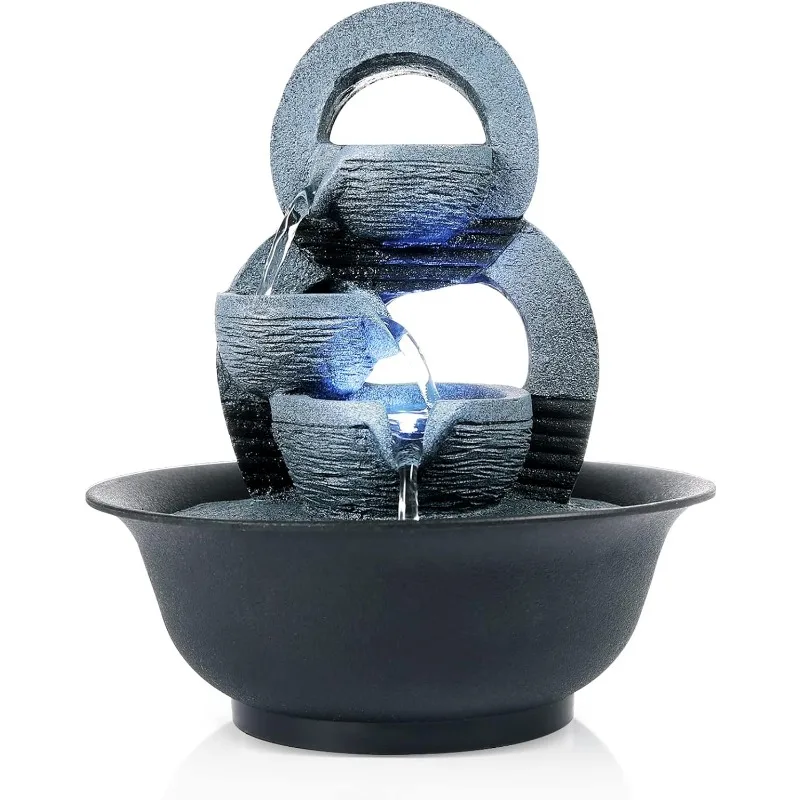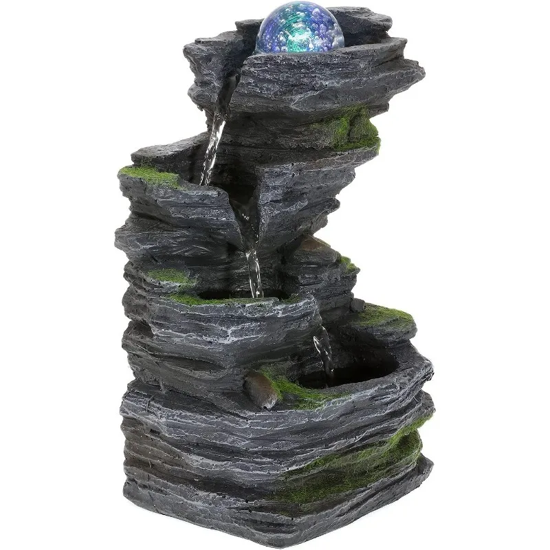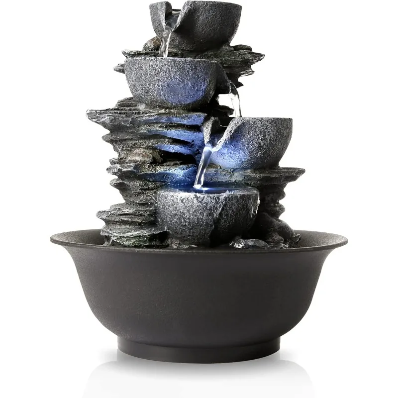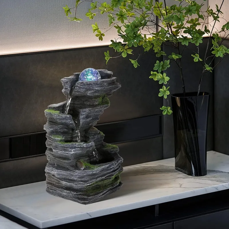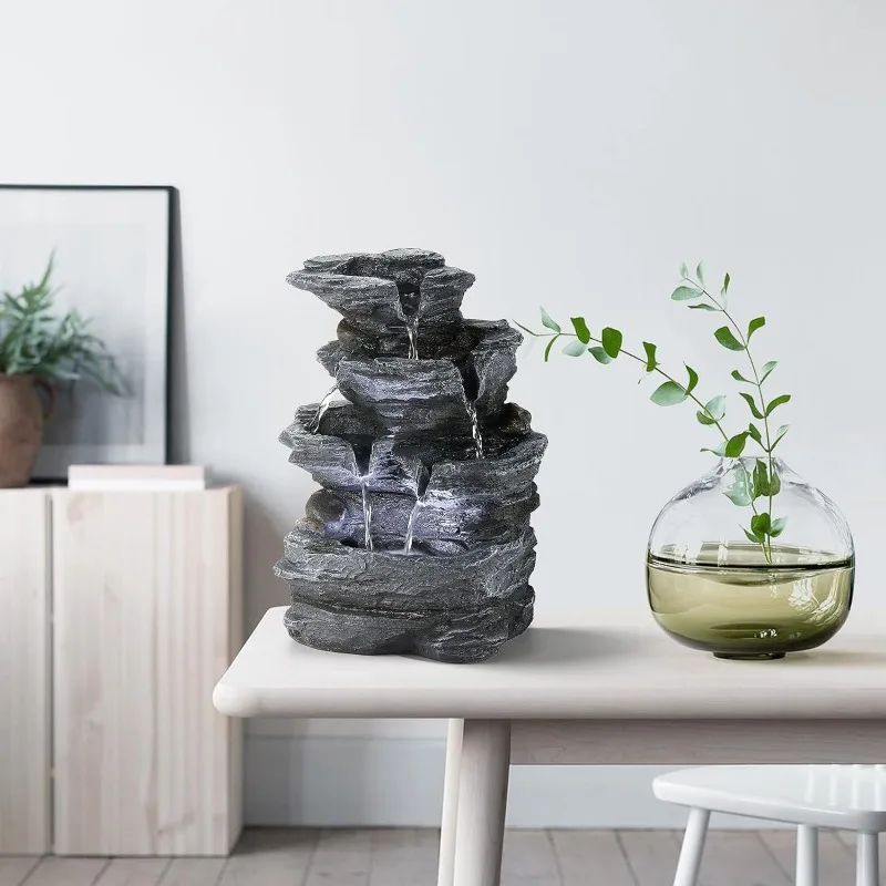 - Built-in LED Light: The fountain is lit by the LED lighting to offer a peaceful, calming glow. Water cascades down water tiers of stone-like layers creating a calming ambiance. Give your home or office a touch of style and serenity with this indoor water feature.
