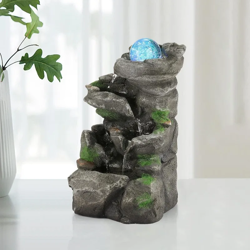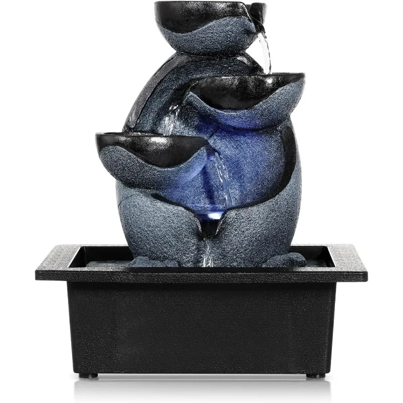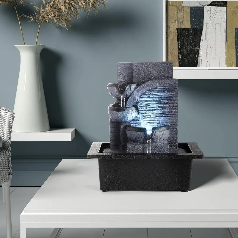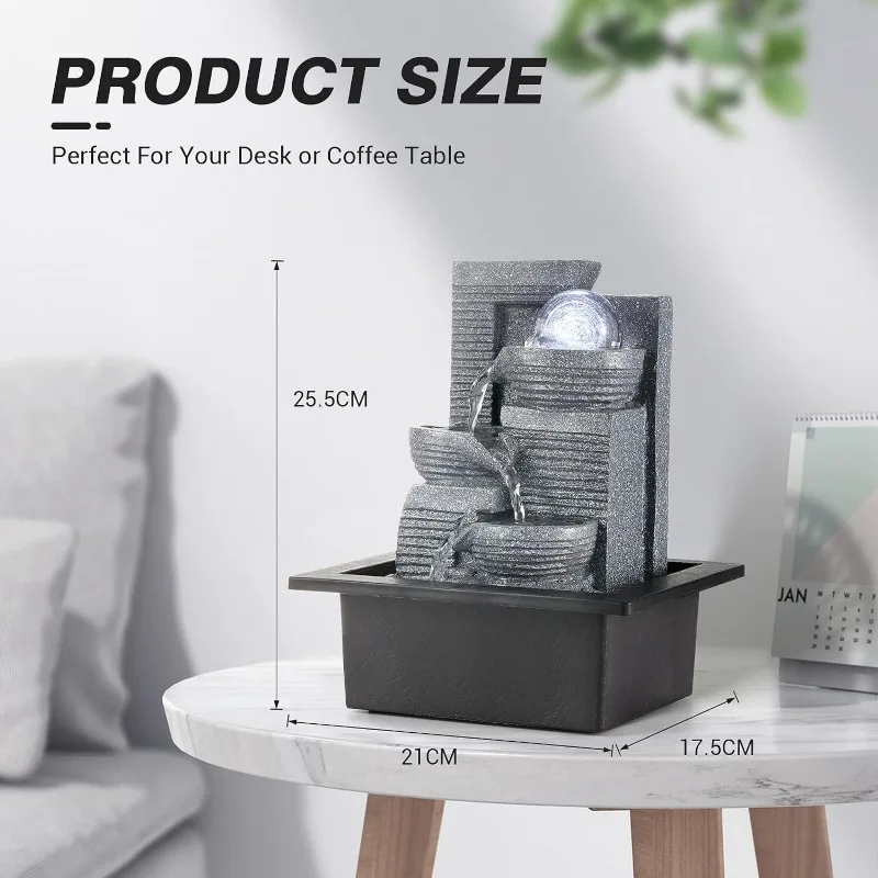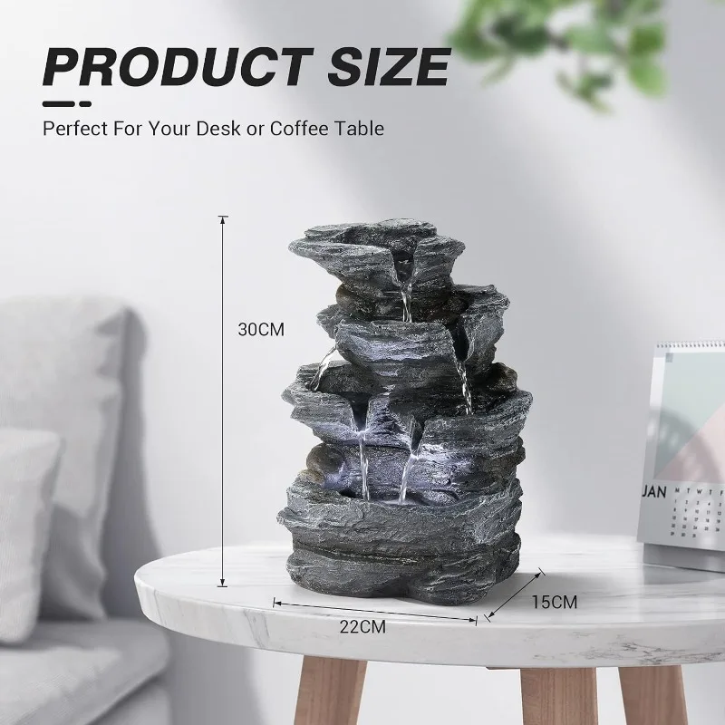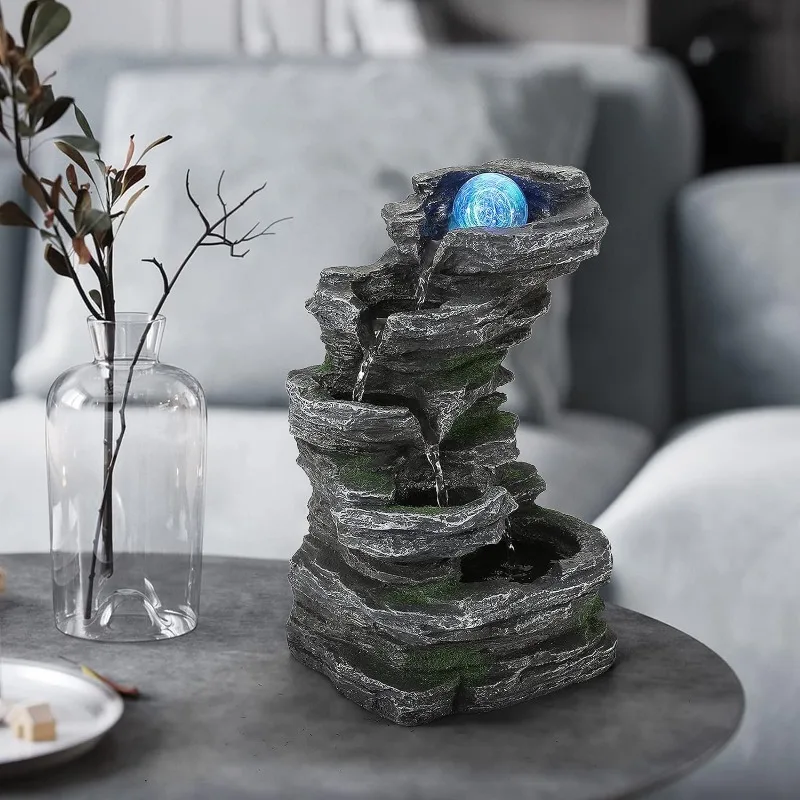 - Built-in LED Light: The fountain is lit by the LED lighting to offer a peaceful, calming glow. Water cascades down water tiers of stone-like layers creating a calming ambiance. Give your home or office a touch of style and serenity with this indoor water feature.