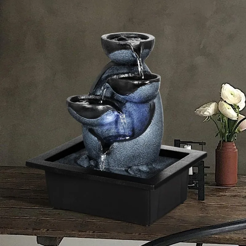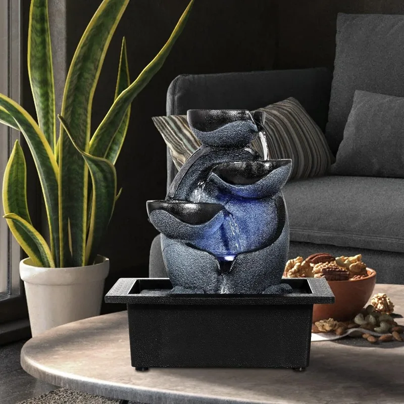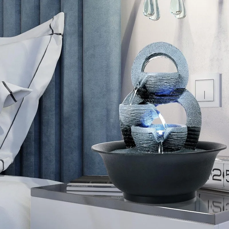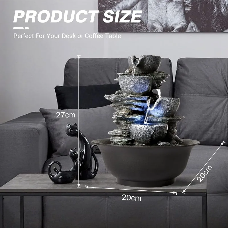 - Calming & Relaxing: This relaxing tabletop fountain let you listen to the sounds of a waterfall crashing down onto the tiers below as they gently rock you to sleep or bring you a comforting stress relief. It provides soothing relaxation and tranquility and all the while actually helping to achieve healthier air humidity levels all around you.