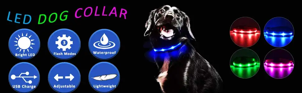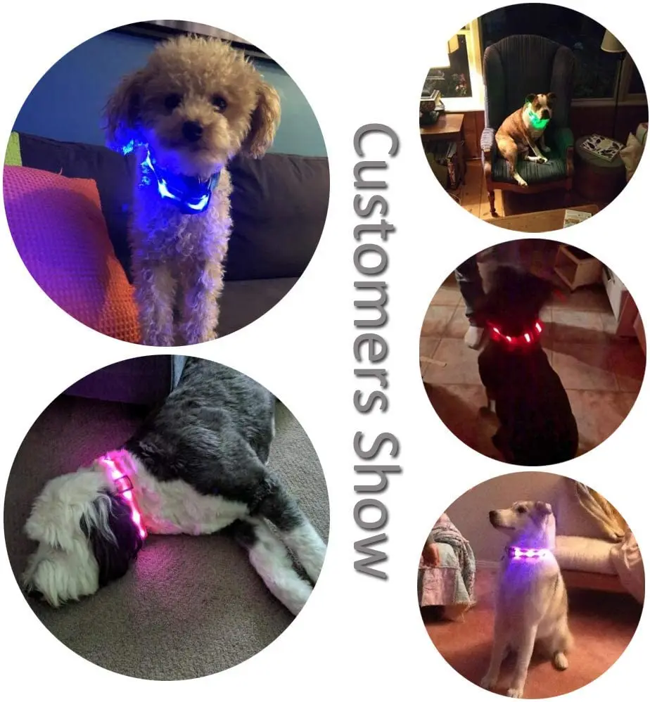 Rechargeable LED Dog Collar 100% Waterproof Flashing Lights with USB Outdoor Walking Night Safety